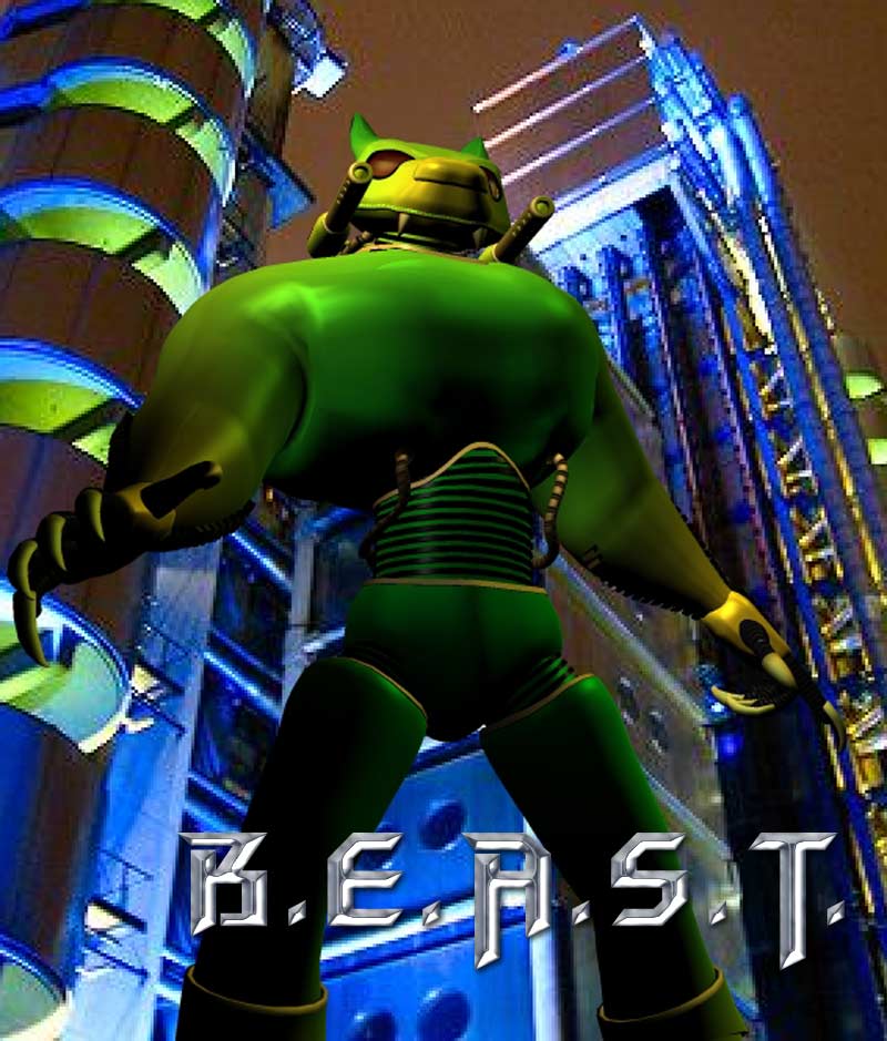 B.E.A.S.T.Real Name: Dr. Dieter Hein Background: A researcher at a large European corporation, Dieter Hein was prone to anxiety and phobias. He built a computer chip that would allow him to suppress his own emotions, but when he implanted it in his own brain, it worked far too well. He felt no emotion or restraint as he coolly and logically murdered his coworkers. Then he built more devices that would allow him to control emotions in others, and incorporated them into an advanced battlesuit that he called the B.E.A.S.T. Later, Lady Hellfire recruited him for the Hellrazers. Group Affiliation:: The Hellrazers Status: Active Skills: Hein is an expert computer engineer and psychologist. Technology: B.E.A.S.T wears a battlesuit of advanced design that incorporates a variety of neural weapons, including guns, gas projectors and field generators, that can incapacitate, kill, or induce terror in others. Creator: Ed Messina First Appearance: VICEROY #30