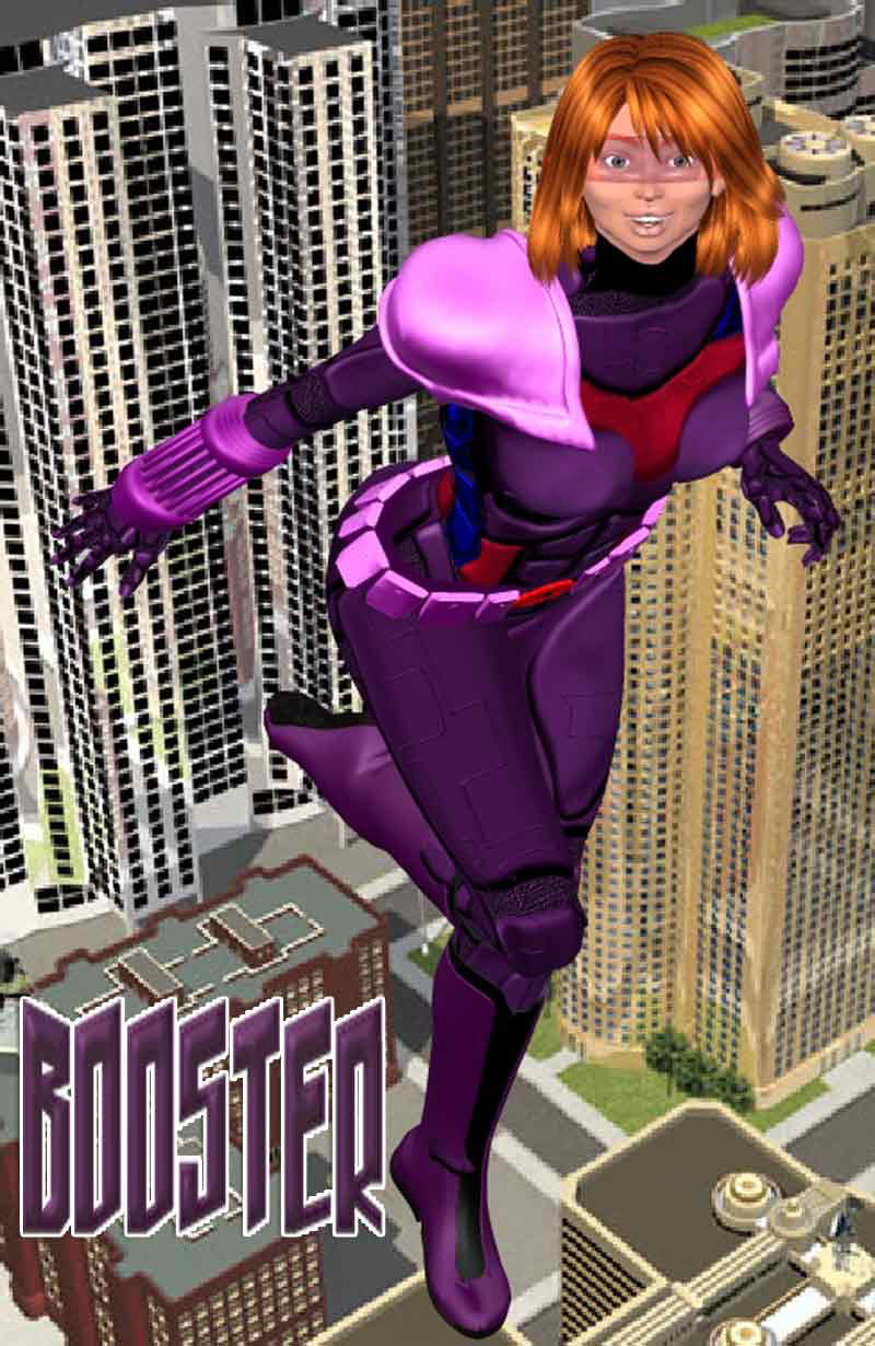 Real Name: Amanda Matthews Background: Booster is the younger sister of Tech, like her brother a skilled inventor and technologist. She covertly designed the Booster suit, improving on the suit designed by Protector, and joined Watchstar over the protests of her older brother. She has since been a mainstay of the team. Group Affiliation: Watchstar Status: Active Skills: