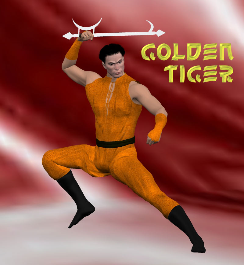 Real Name: Johnny Wing Background: Johnny Wing is a famous Hong Kong martial arts actor and stuntman, star of such films as Fists of Flame. However, after exposing a gang of supervillain mobsters who were financing his movie career, he gave up movies and joined the 4th Watchstar team. Group Affiliation:: Former member, Watchstar (4th team) Status: Active Skills: Golden Tiger is a master of the ancient art of Kung Pao and several other martial arts, and a skilled acrobat. Technology: Golden Tiger has a large arsenal of deadly martial arts weapons. Creator: Jim LoPiano FIrst Appearance: WATCHSTAR SPECIAL #1 Character Sheet |