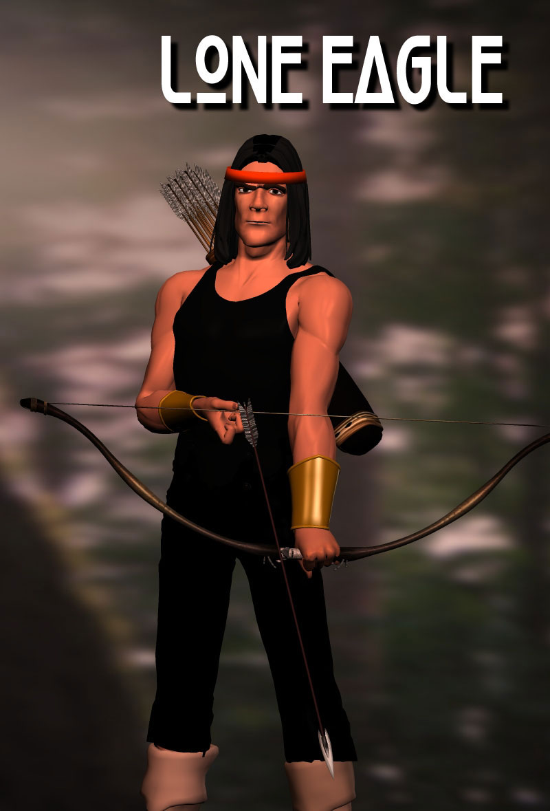 Real Name: Brian Strongarm Background: Lone Eagle was a Native American shaman and guardian of his tribe. After many adventures in the Western US, he moved east to join the second Watchstar team. While on a space voyage, Lone Eagle was killed by the aliens known as the Horde. Group Affiliation:: Watchstar (second team) Status: Him heapum dead! Skills: Lone Eagle was a skilled archer, hunter and tracker. Technology: Lone Eagle made use of a magic bow and arrows. Creator: John Rugel |