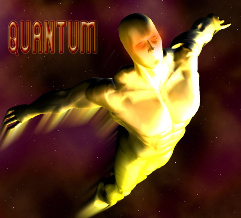 Real Name: Shawn Michaels Background: During the Hero Wars, the superhero M was infected with the alien virus. His powers mutated and quickly grew out of control. He adopted a new form and identity known as Quantum. He accompanied his friend Viceroy into space in search of a cure for his condition, and joined the team of galactic freedom fighters called the Liberators. Group Affiliation:: Former member of the Sentries, former member of Watchstar, second team; current member of The Liberators Status: Active Powers: Quantum's body is a coherent, self-sustaining energy matrix. He can control electromagnetic energies, projecting light, gamma rays and other energies across the spectrum. He has learned to control his appearance and can appear as a normal human when desired. Skills: Quantum is a trained scientist and a skilled pilot. Creator: Jim LoPiano |