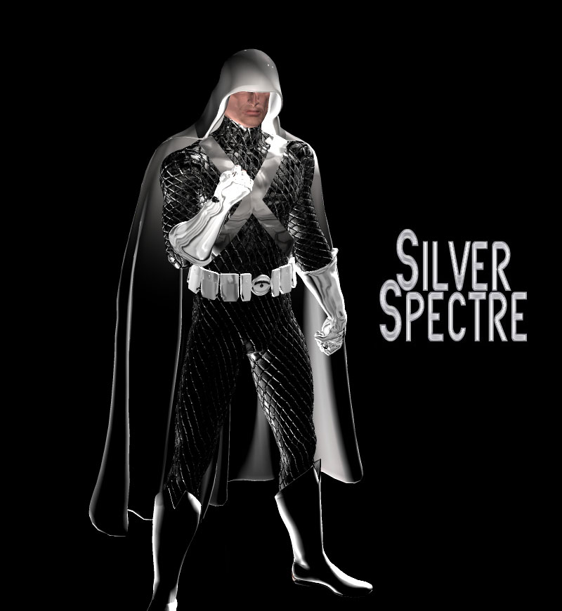 Real Name: Harry Shepherd Background: Silver Spectre was the fifth incarnation of the superhero known as Enigma, whose identity would periodically shift due to an experimental holographic device that had scrambled his DNA. Silver Spectre has occasionally re-appeared over the years. The Silver Spectre later morphed into Stormbird. Group Affiliation:: Watchstar West Status: Unknown Powers: SIlver Spectre could teleport from shadow to shadow and become nearly invisible. He also had superhuman strength and agility. Skills: Silver Spectre was a skilled martial artist and a master detective. Technology: Silver Spectre briefly flew a private jet known as the Spectre One. Creator: Jeff Messina |