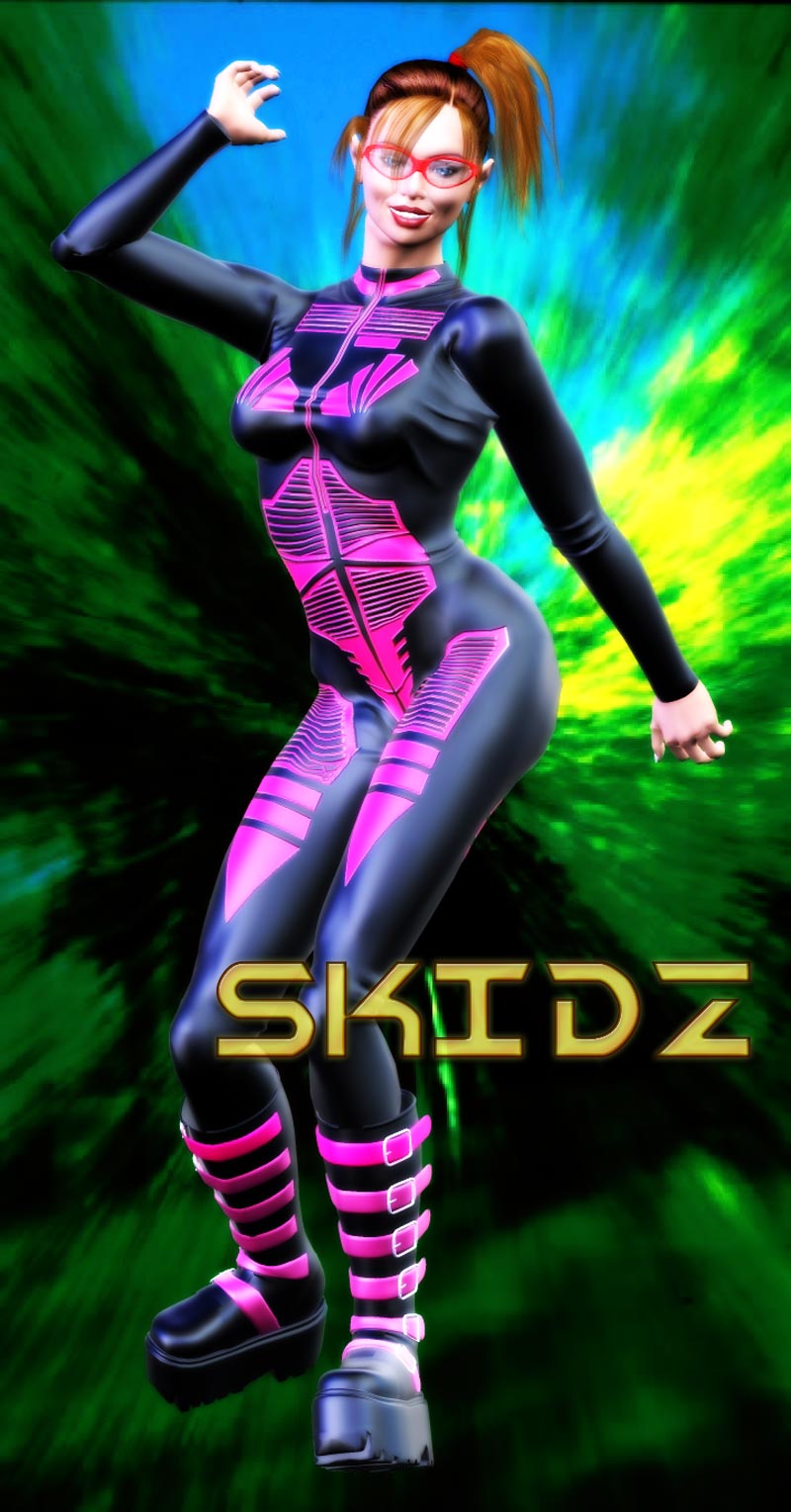 Real Name: Samantha Danner Background: Seattle computer hacker Samantha Danner was programming late one night when the supervillains called Hardware Unlimited (including Channel and Traxx) broke in to her hideaway, looking for secret technology they thought she had stolen. Exposed to an experimental beam, Danner gained the power to move at superspeeds. She was later asked to join the private security firm called CounterForce. Group Affiliation:: Leader of CounterForce Seattle Status: Active Powers: Skidz can run at supersonic speeds and generate vibrational energy. Skills: Skidz is an expert computer hacker and has a black belt in Tae Kwon Do. Technology: Skidz has access to the standard allotment available to all CounterForce operatives. Creator: Jeff Messina |