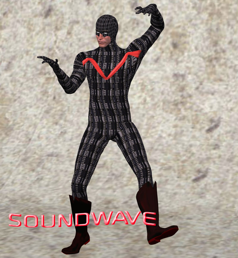Real Name: Duncan Black II Background: Duncan Black is the son of the original Soundwave and the brother of Changeling , who inherited his father's sonic suit. Hotheaded and proud, young Duncan joined the Transasian Lawgivers as a way to avenge what he felt was his father's tarnished reputation. Captured in Isola by Watchstar, he was later paroled and offered a chance to join the Corsairs, which he accepted. Group Affiliation:: Former member of the Lawgivers, current member, Corsairs. Status: Active Skills: Black is a skilled computer programmer. Technology: Soundwave wears a battlesuit invented by his father that allows him to manipulate sound. Creator: Jim LoPiano |