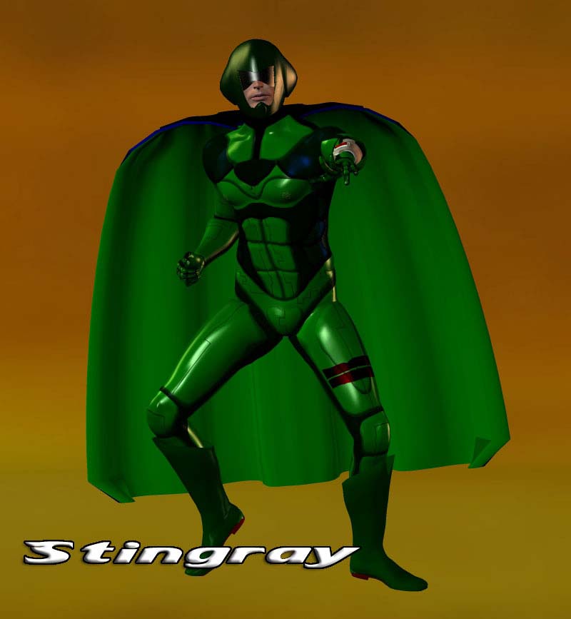 Real Name: Wes Miles Background: Wes Miles was a prominent West Coast TV News reporter who covered the superhero beat.When his friend Stingray was killed, he took over wearing his friend's battle armor to avenge his murder at the hands of Azrael. Group Affiliation:: Knight/Watch Status: Inactive Powers:None Skills: Skilled newsman with West Coast connections, eidetic memory and luck Technology: The Stingray battlesuit gives its wearer flight and incorporates electric and laser weaponry. Creator: Wes Miles created by Steve Mancuso. Stingray II revision by Jeff Messina |