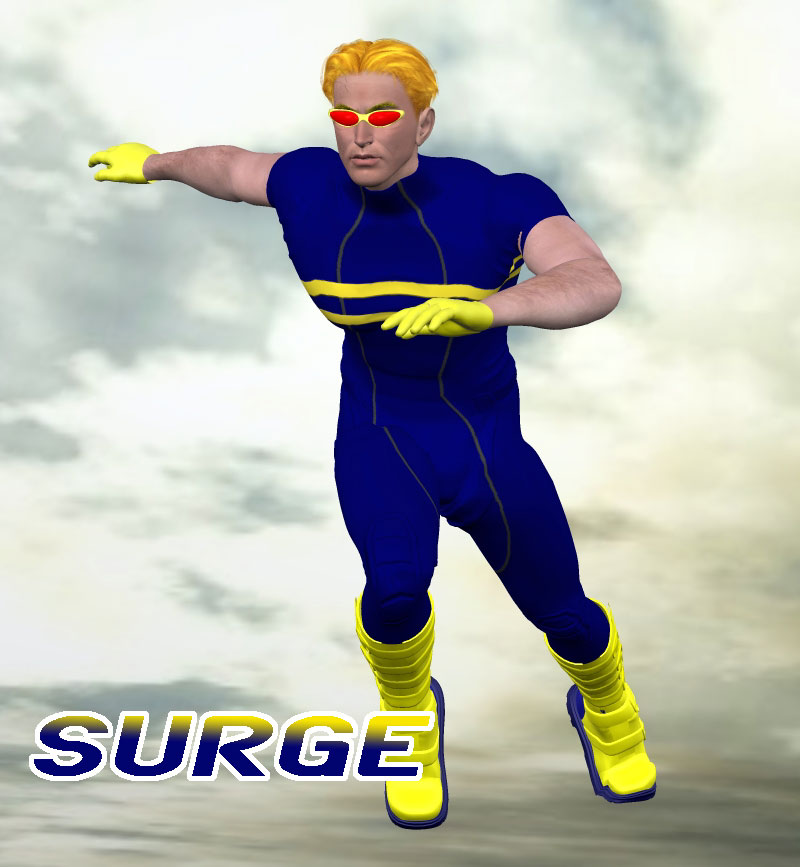 Real Name: Mitchell Young Background: Surge is a supermutant who discovered his powers as a teenager. Beginning his career with the name Charger, he joined the first Watchstar team. He was later 'killed' by Sargon. However, his electronic form was later reconstituted and he took the name Surge. He assumed leadership of the third Watchstar team when Gauntlet was injured, and then reassumed leadership of the fifth Watchstar team. Surge is married to news reporter Tamara Baines Young. Group Affiliation:: Team leader, Watchstar Status: Active Powers: Surge's body is composed of a form of living electricity and he has powers in keeping with that form. Skills: Surge is a skilled leader and strategist. Creator: Jeff Messina First Appearance: (As Charger) WATCHSTAR #15, (As Surge) WATCHSTAR #90 |