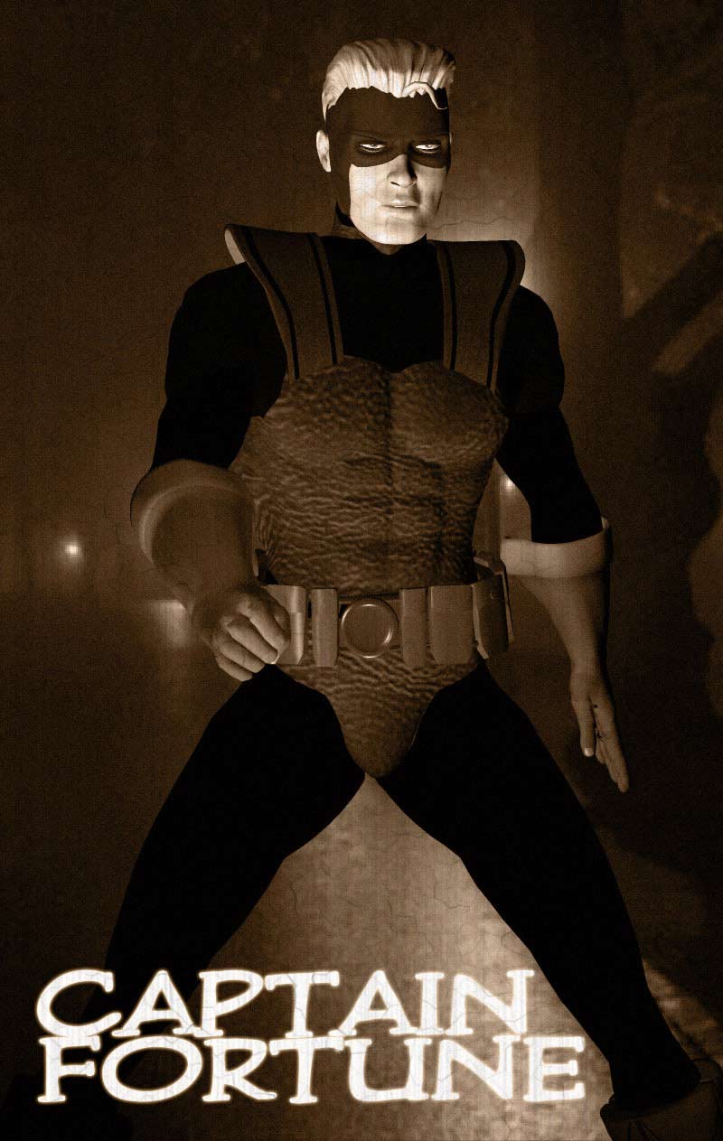 Captain FortuneReal Name: Tyler Van Warren Background: Alec Van Warren was a wealthy scholar and world traveller in the days before World War II. While over the remote Himalayas, his private plane was shot down by sky pirates, with his wife and son Tyler aboard. Alec and his wife were critically injured. Tyler fought off the pirates alone and managed to get his parents to the shelter of a hidden cave. The cave was actually the gateway to an underground temple that housed an ancient order of monks. The monks were impressed by the boy's courage and detemination, and tried to heal his parents, but to no avail. They took the orphaned boy under their tutelage, and for over a decade, trained him in their mystical martial arts, which included the ability to foretell the future. One night, before his training was complete, Tyler had a terrible vision of the world's future: there was to be a vast battle of good versus evil. He saw himself alongside others in that battle. Isolated from the outside, he had no idea that a new World War was brewing. Fleeing the the monks, he made his way back to America, where he found he was heir to a vast fortune. He swore to use it to ensure that the forces of good would triumph in the upcoming battle. To protect his identity, he took the name Captain Fortune, and began a career as a crimefighter and spy-smasher. Later, he recruited the heroes he had seen in his vision for a group called the Victory Squadron. Group Affiliation: Leader of the Victory Squadron Powers: Captain Fortune has the ability to foretell the future, although since his training was not complete, he couldn't control the power. Skills: Captain Fortune is a skilled martial artist and detective. Technology: Captain Fortune wasn't shy of using gadgets in his war against evil. Creator: Jeff Messina |